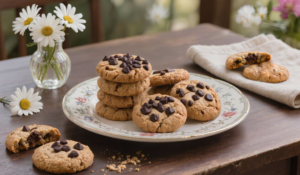 Die Cookies 5–10 Minuten auf dem Backblech ruhen lassen, bevor du sie weiter bewegst – so härtet die Schokolade leicht an und die Textur bleibt optimal.