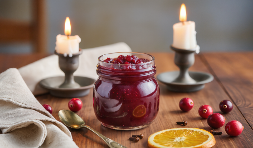 Chutney aufkochen und anschließend bei niedriger Hitze 15–20 Minuten sanft köcheln lassen, bis die Cranberries aufplatzen und die Masse dicklich wird.