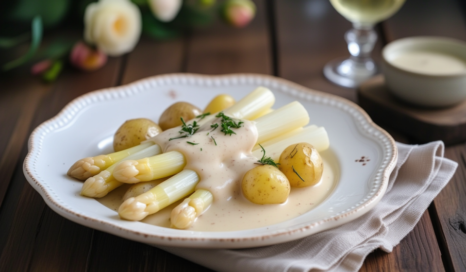 veganer Spargel, Spargel mit Béchamelsauce, vegane Béchamel, Frühlingsrezepte vegan, vegane Béchamelsauce ohne Butter, Spargel mit cremiger Sauce vegan, einfache vegane Spargelsauce, milchfreie Béchamelsauce selber machen, Rezept vegane Bechamelsauce