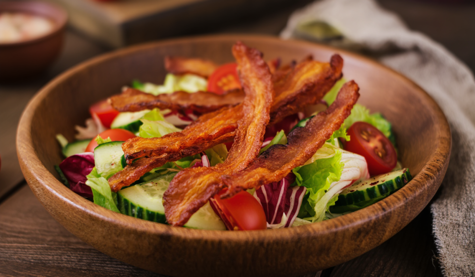 veganer Bacon, Karotten Bacon, pflanzlicher Speck, Möhren Bacon vegane Bacon-Alternative selber machen, knuspriger Karotten-Bacon Rezept, gesunder veganer Speck für Burger, rauchiger veganer Bacon aus Gemüse, einfaches Rezept für pflanzlichen Bacon, veganer Frühstücksbacon aus Möhren, veganer Frühstücksbacon aus Karotten, Rezept veganer Bacon