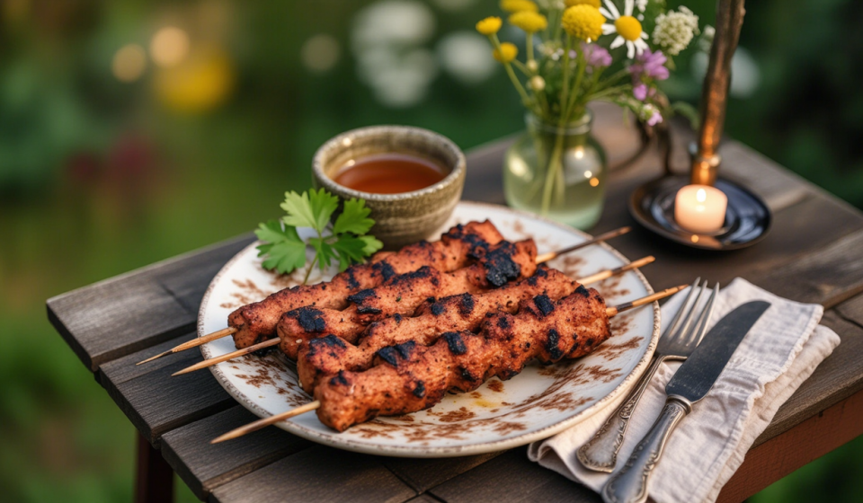 Die Spieße bei mittlerer Hitze ca. 5–7 Minuten pro Seite grillen oder alternativ in einer Pfanne mit etwas Öl braten, bis sie außen schön knusprig sind.