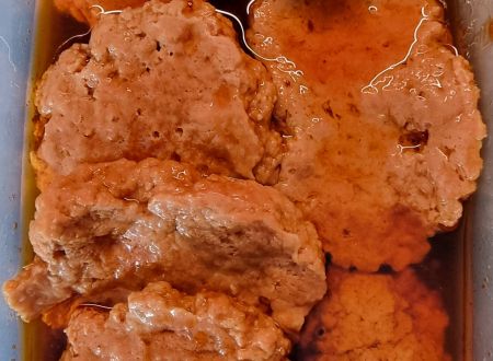 Die Gemüsebrühe zubereiten und aufkochen. Dann die Steaks hineingeben und 15 Minuten kochen. Keine Angst, die Steaks quellen auf. In der Marinade werden sie dann wieder schön.