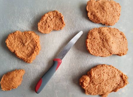 Dann die Masse zu einem Laib kneten und in ca. 1,5 cm dicke Scheiben schneiden, so wie die Steaks hinterher aussehen sollen.