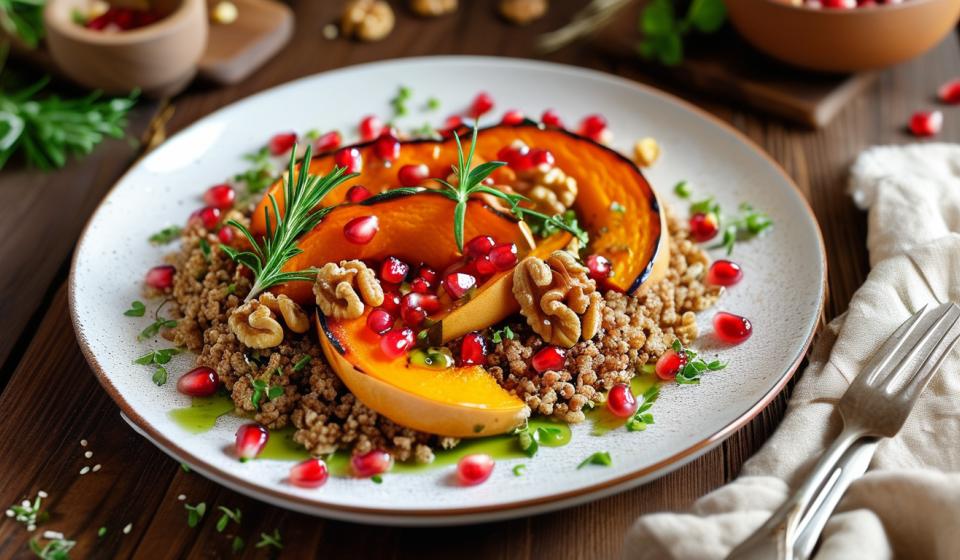 Granatapfel-Nuss-Couscous mit Ofen-Kürbis (vegan)