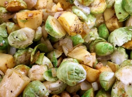 - Rosenkohl und Kartoffeln dazugeben und weitere 2-3 Minuten mitdünsten.