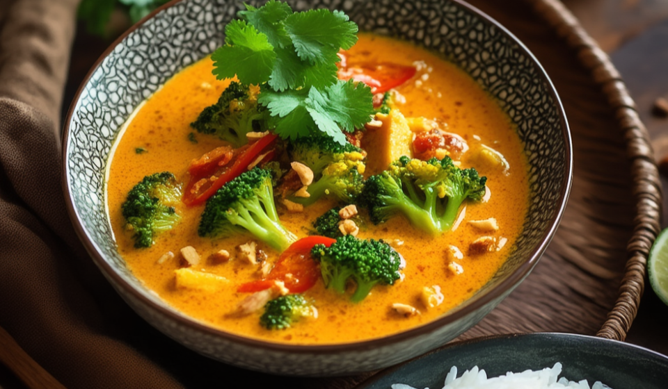 Dieses vegane thailändische Brokkoli-Curry ist ein echtes Geschmackserlebnis – cremig durch Kokosmilch, angenehm scharf und voller exotischer Aromen. Mit frischem Gemüse, wertvollen Gewürzen und knackigen Nüssen zauberst du ein gesundes, pflanzenbasiertes Wohlfühlgericht auf den Tisch, das in unter 30 Minuten fertig ist. Perfekt für stressige Alltage, Meal Prep oder als Highlight beim veganen Abendessen. Auch für Anfänger leicht nachzukochen! veganes brokkoli curry rezept brokkoli curry kokosmilch vegan thailändisches curry einfaches curry rezept vegan gemüsecurry mit brokkoli veganes curry mit kokosmilch veganes rezept mit brokkoli schnelles curry rezept glutenfreies curry rezept gesundes veganes mittagessen asiatisches curry mit brokkoli cremiges veganes curry low carb curry rezept veganes abendessen curry ohne tofu rezept ohne tierprodukte vegane rezepte mit kokosmilch