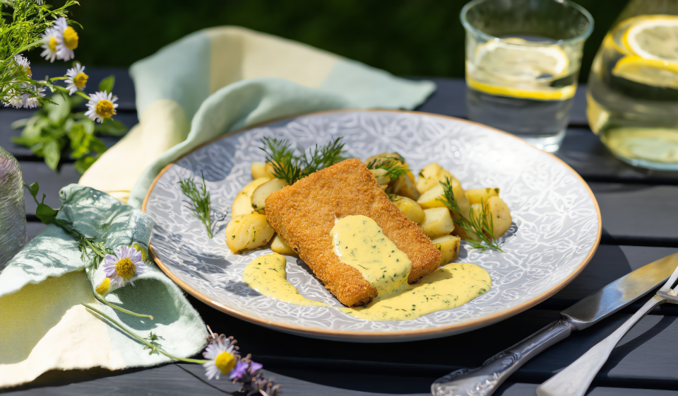 Tofu-Filet à la Bordelaise mit Zitronen-Senf-Sauce (vegan)
