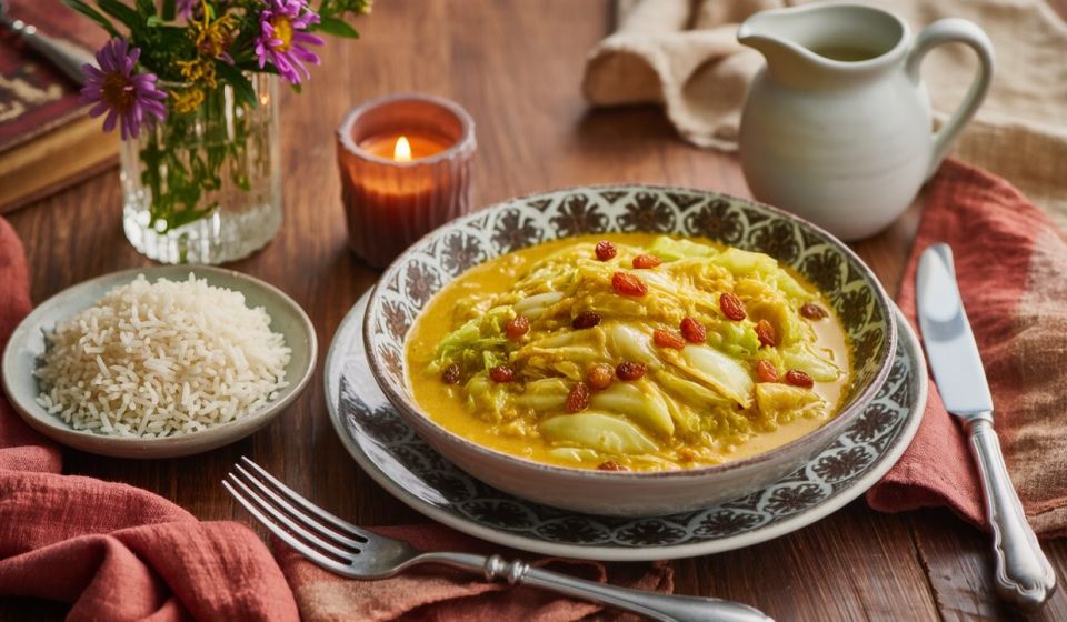 Wirsing muss nicht immer deftig sein – in diesem Rezept trifft das heimische Wintergemüse auf exotische Aromen: Cremige Kokosmilch, feines Curry, eine fruchtige Rosinennote und ein Spritzer Zitrone machen diesen Wirsing mit Kokosmilch zu einem echten Geschmackserlebnis. Schnell zubereitet, wunderbar wärmend und perfekt als veganes Hauptgericht mit Reis serviert. Ob als gesundes Mittagessen oder leichtes Abendessen – dieses Rezept ist ideal für alle, die Wirsing mal neu entdecken möchten! wirsing kokosmilch rezept vegan wirsing rezept exotisch wirsing mit kokosmilch curry wirsing asiatisch wirsing rosinen kokos wirsing mit reis rezept kokosgemüse mit wirsing vegan wintergemüse rezept wirsing mit kokosmilch und curry einfaches wirsing rezept mit kokosmilch gesundes wirsing gericht kokos curry wirsing vegan wirsing kokos rezept schnell wirsing mit kokosmilch und rosinen pflanzliches rezept mit wirsing
