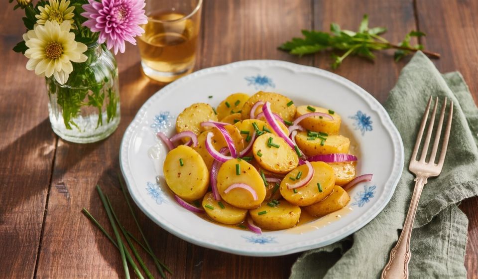 Du suchst einen einfachen, aber geschmackvollen veganen Kartoffelsalat ohne Mayo, der warm serviert wird und wunderbar satt macht? Dieser österreichische Erdäpfelsalat nach Wiener Art ist leicht, würzig und dank Brühe, Essig und Öl besonders aromatisch. Perfekt als Grillbeilage oder Meal-Prep-Salat. Und: Wer es proteinreicher mag, kann mit Tofu, Kichererbsen oder Edamame ganz einfach aufwerten – ohne viel Extraaufwand. veganer kartoffelsalat ohne mayo warmer kartoffelsalat rezept wiener art erdäpfelsalat vegan proteinreicher veganer kartoffelsalat kartoffelsalat mit tofu kartoffelsalat mit edamame veganer salat mit kichererbsen beilage vegan eiweißreich kartoffelsalat zum grillen kartoffelsalat österreichische art vegan einfach schnell veganer kartoffelsalat rezept pflanzlich eiweißreiche salatideen vegane beilage für sommer rezept mit sojajoghurt essig öl kartoffelsalat vegan protein salat rezept pflanzlich