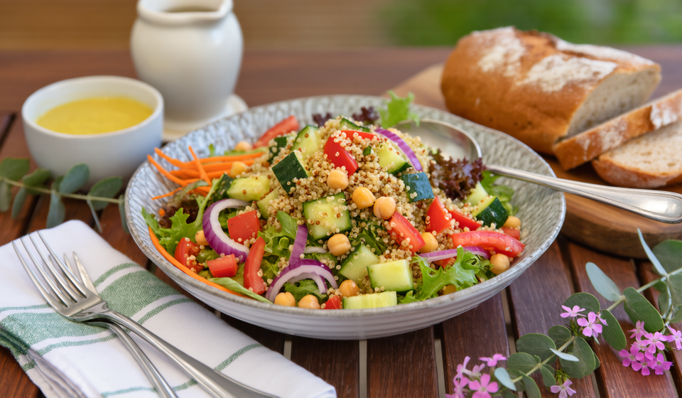 Diese erfrischende Quinoa Bowl mit Zitronen-Senf-Dressing ist der perfekte leichte und gesunde Genuss für alle, die frisches Gemüse und eine proteinreiche Basis lieben. Quinoa sorgt für eine sättigende Textur und kombiniert sich harmonisch mit knackigem Gemüse und einem spritzigen Dressing, das durch die frische Zitrone und den würzigen Senf besticht. Ideal als schnelles Mittagessen oder leichte Abendmahlzeit, lässt sich dieses Rezept einfach und unkompliziert zubereiten – gesund, vegan und voller Geschmack. quinoa bowl rezept zitronen senf dressing gesunde bowl vegane quinoa bowl leichte bowl rezept quinoa gemüse bowl einfaches quinoa rezept proteinreiche quinoa bowl zitronen dressing quinoa salat vegetarisch leichte gesunde mahlzeit schnelle quinoa bowl gesundes mittagessen veganes bowl rezept leckeres dressing für quinoa sommerliche quinoa bowl