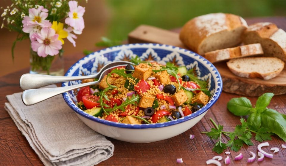Diese vegane mediterrane Tofu Bowl ist das perfekte Gericht für alle, die leichte, gesunde und geschmackvolle Mahlzeiten lieben. Mit proteinreichem Tofu, frischem Gemüse und einem zitronig-würzigen Dressing bringt diese Bowl den Geschmack des Mittelmeers direkt auf deinen Teller. Schnell zubereitet und ideal als Mittag- oder Abendessen – vegan und vollgepackt mit Nährstoffen. vegane mediterrane bowl vegane tofu bowl mediterrane tofu bowl rezept vegan gesund mediterranes bowl rezept einfache vegane bowls proteinreiche vegane bowls veganes mittagessen mediterrane vegane rezepte vegane salat bowl leichte vegane bowl rezepte vegane bowls mit tofu mediterrane bowl mit couscous vegane bowls schnell zubereitet vegan bowl dressing zitronen dressing vegan bowl gesund