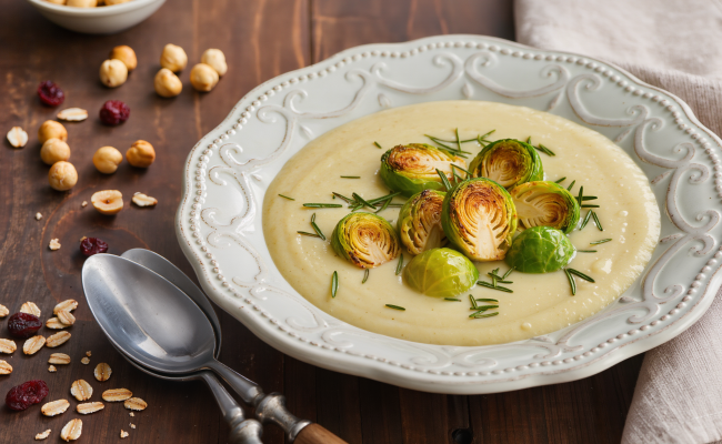 Pastinakensuppe mit Vanille & Rosenkohl-Einlage (vegan)