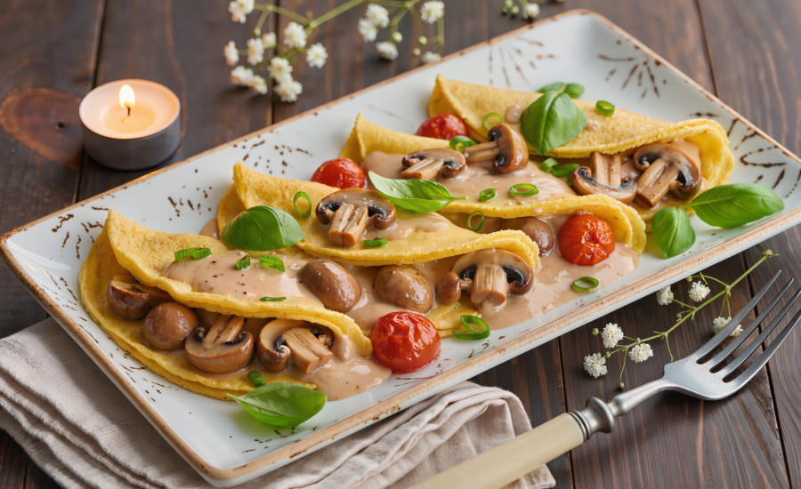 Corn Pancakes with Mushroom-Veggie Ragout