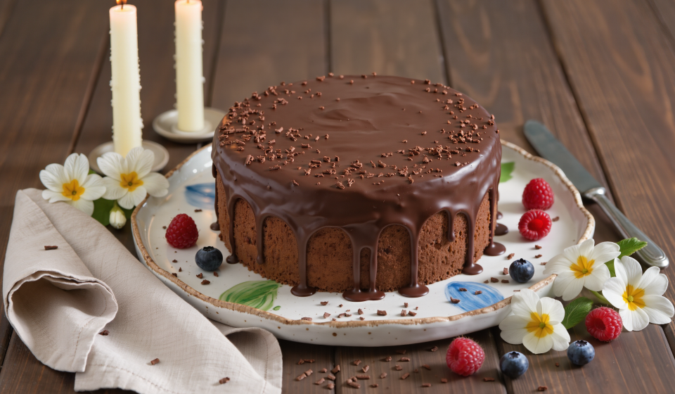 Vegan Chocolate Cake with Melted Chocolate